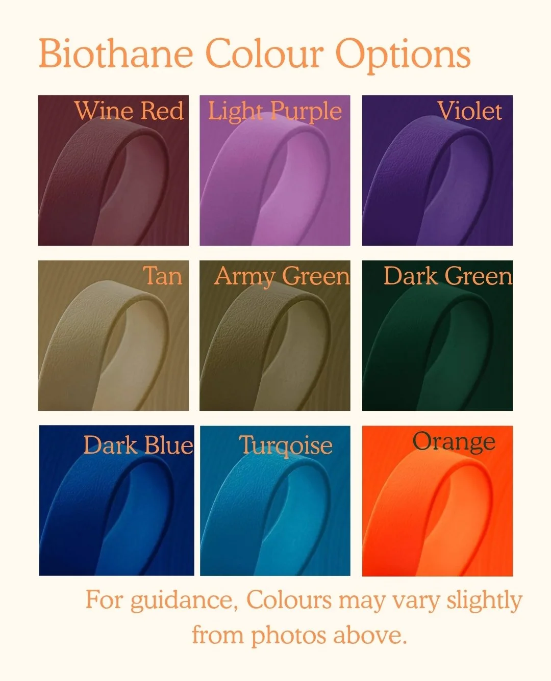 Each collar is made exactly to your selected size, with measurements taken from end to end including the metal buckle to ensure a precise, consistent fit.